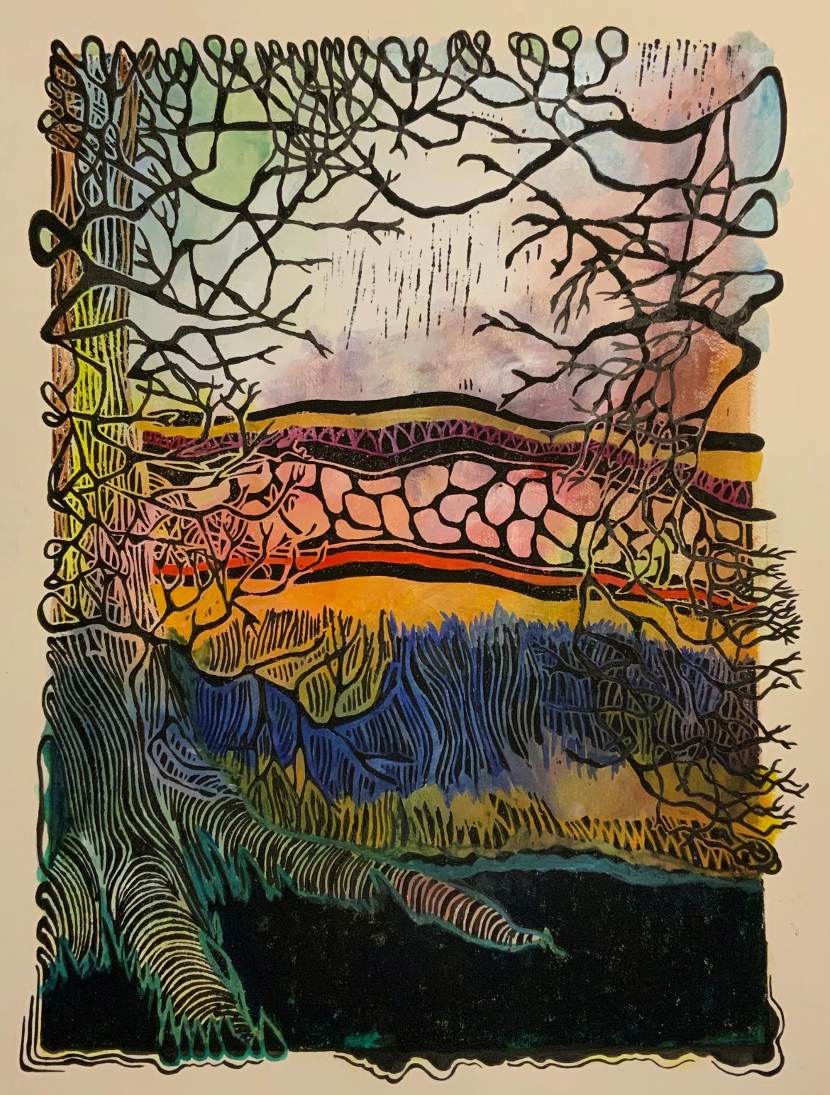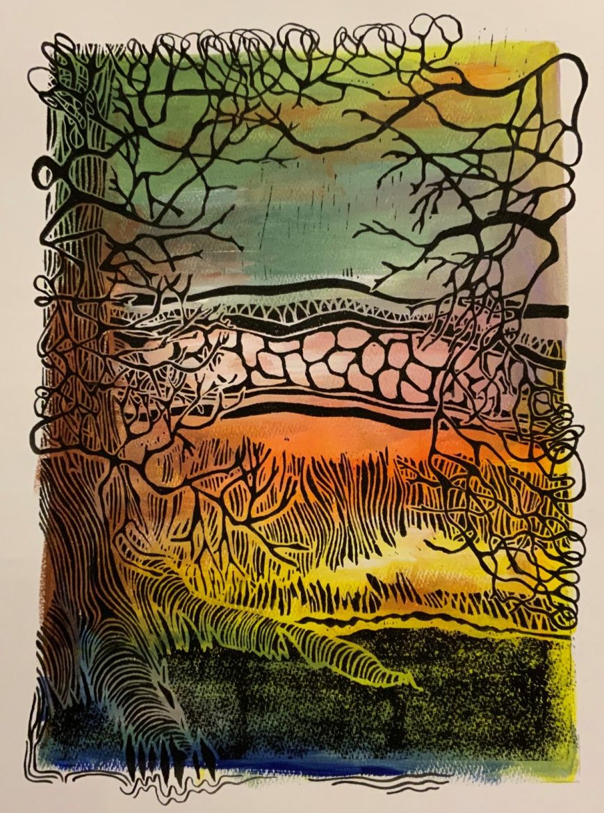 Linocut and painting