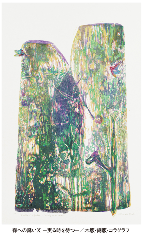 SUMIKO OKUBO SOLO EXHIBITION “A Wish for the Harvest” A Temptation for the Forest X – Waiting for the Season- 2018 80 x 48cm wood block, etching , collagraph Exhibiting artists Sumiko Okubo