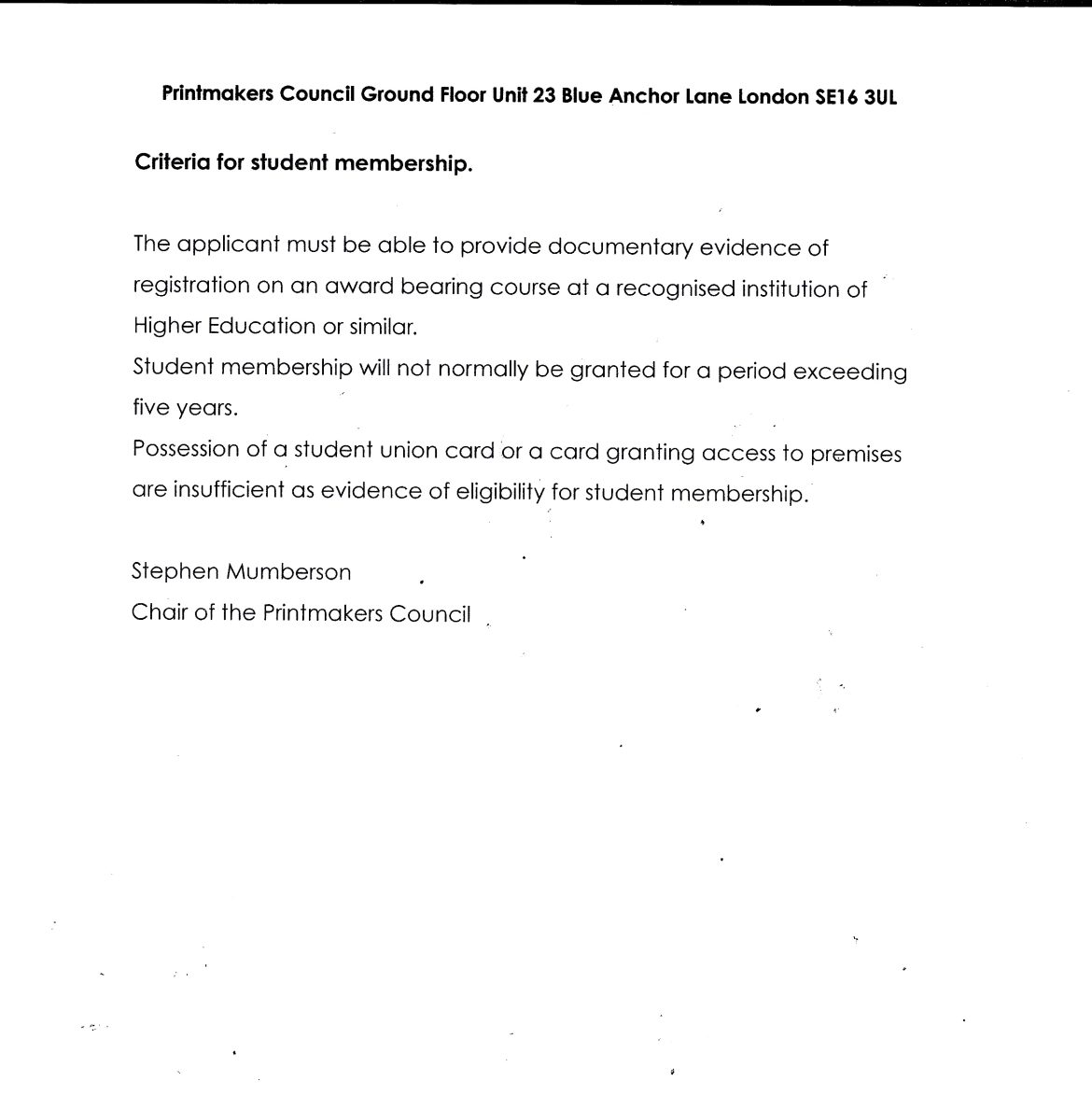Student Membership Criteria